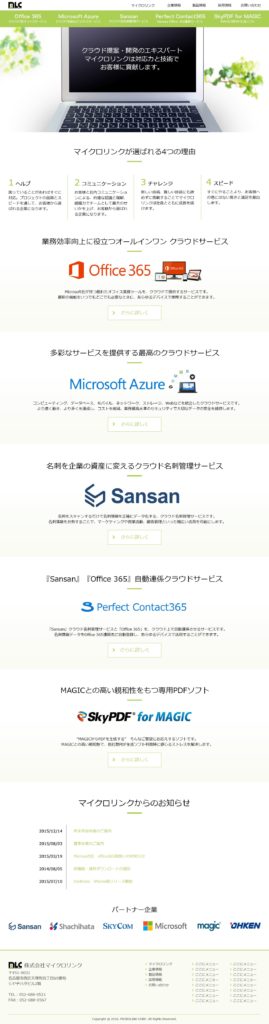 マイクロリンク 制作期間 2017年01月〜2017年02月 WordPressのテンプレートの指定があったので、それを元にデザインを企業仕様にし、入れ込みました。クライアント曰く、Office365のようにシンプルさを追求したくてテンプレートを指定したようです。 https://www.microlink.co.jp/ ← 過去の投稿へ 次の投稿へ →