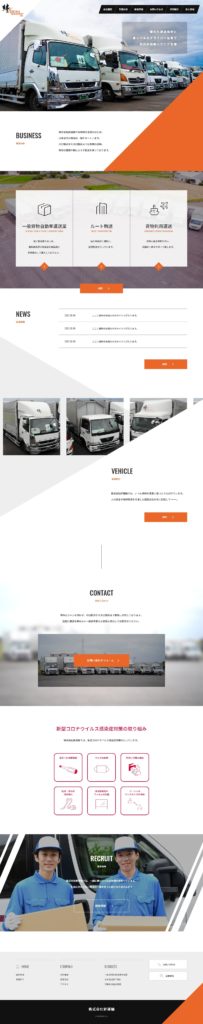 運送会社なので、躍動感を加えるために斜めラインを活用しました。WordPressの仕様で、複数のGoogleFontsを読み込む際の記述方法が特殊だったことにつまずきましたが、おかげでその後の制作に知恵を発揮することができています。