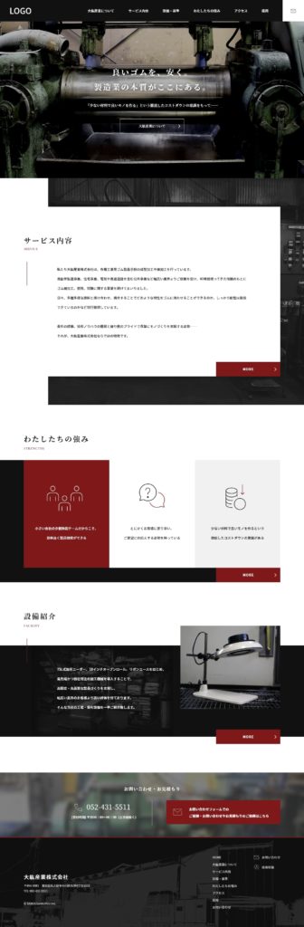 大絋産業株式会社 制作期間 2021年08月〜2021年10月 ご支給頂いた写真の質が良いとは言えず…メインビジュアルをどうしようか迷いましたが、Photoshopでトーン・彩度を調整し、今に至ります。先にトップのみ公開し、後から下層ページを作成していったので、制作期間が長めです。 https://taiko-sangyou.com/ ← 過去の投稿へ 次の投稿へ →