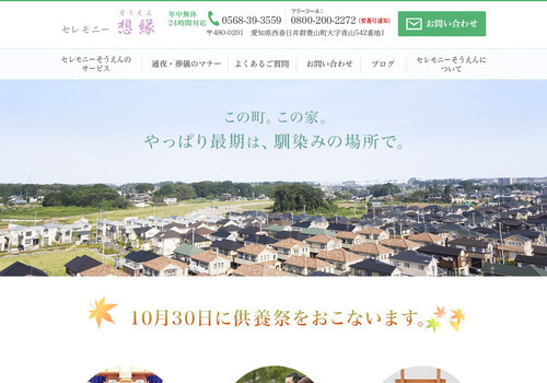 葬儀屋さんの企業サイトで、優しい雰囲気になるよう淡いグリ…